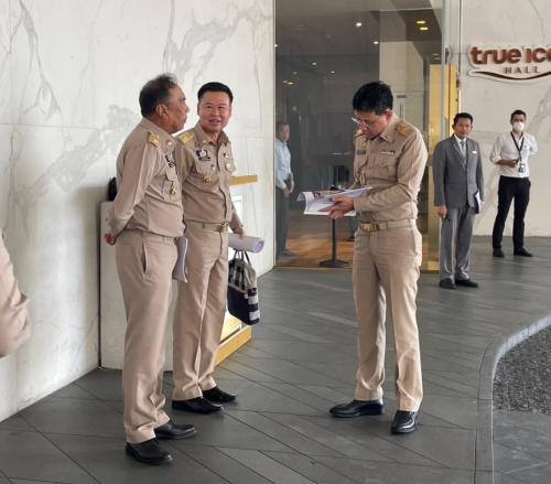 นายสยาม ศิริมงคล อธิบดีกรมการพัฒนาชุมชน พร้อมด้วยนายวรงค์ แสงเมือง รองอธิบดีกรมการพัฒนาชุมชน นายไพโรจน์ โสภาพร ผู้อำนวยการสำนักส่งเสริมภูมิปัญญาท้องถิ่นและวิสาหกิจชุมชน คณะผู้บริหาร บุคลากรกรมการพัฒนาชุมชน เข้าร่วมประชุม และสำรวจพื้นที่เพื่อเตรียมการรับเสด็จ สมเด็จพระเจ้าลูกเธอ เจ้าฟ้าสิริวัณณวรี นารีรัตนราชกัญญา เนื่องในโอกาส การประกวดผ้าลายพระราชทาน "ผ้าลายสิริวชิราภรณ์" และงานหัตถกรรม รอบตัดสิน ระดับประเทศ (Final)