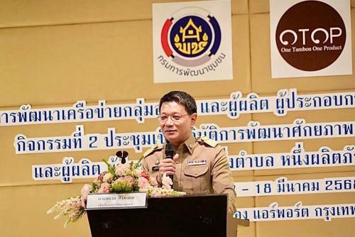 นายสยาม ศิริมงคล อธิบดีกรมการพัฒนาชุมชน กระทรวงมหาดไทย เป็นประธาน เปิดการประชุมโครงการพัฒนาศักยภาพเครือข่ายอาชีพ และผู้ผลิต ผู้ประกอบการ หนึ่งตำบล หนึ่งผลิตภัณฑ์ โดยมีนายสุรพล แก้วอินธิ ผู้อำนวยการสำนักส่งเสริมภูมิปัญญาท้องถิ่นและวิสาหกิจชุมชน กล่าวรายงานวัตถุประสงค์โครงการฯ ในการนี้ ผู้บริหารกรมการพัฒนาชุมชน และเจ้าหน้าที่ เข้าร่วมโครงการฯ ณ โรงแรมไมด้า ดอนเมืองแอร์พอร์ต เขตหลักสี่กรุงเทพมหานคร การอบรมครั้งนี้ได้เชิญนายญาณวิธ นราแย้ม กรรมการผู้จัดการ บริษัท เดอะวันแค้ม มาร์เก็ตติ้ง จำกัด และนางสาวอัจฉรา ชมภูทัน กรรมการผู้จัดการ ห้างหุ้นส่วนจำกัด ยี่สิบดี ร่วมเป็นวิทยากรโครงการฯ