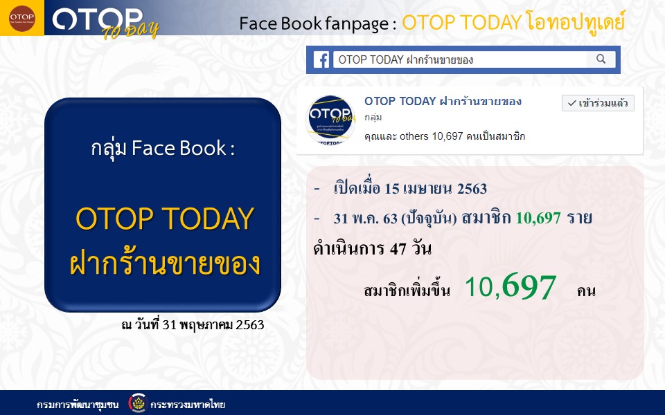 การ Live สด ทาง Facebook : OTOP TODAY โอทอปทูเดย์