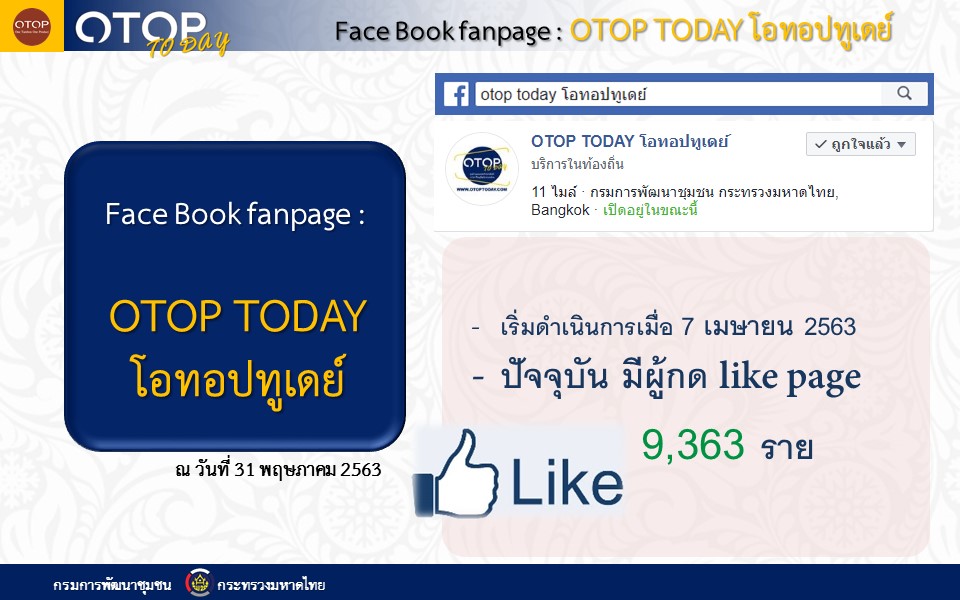 เพจเฟสบุ๊ค OTOP TODAY โอทอปทูเดย์